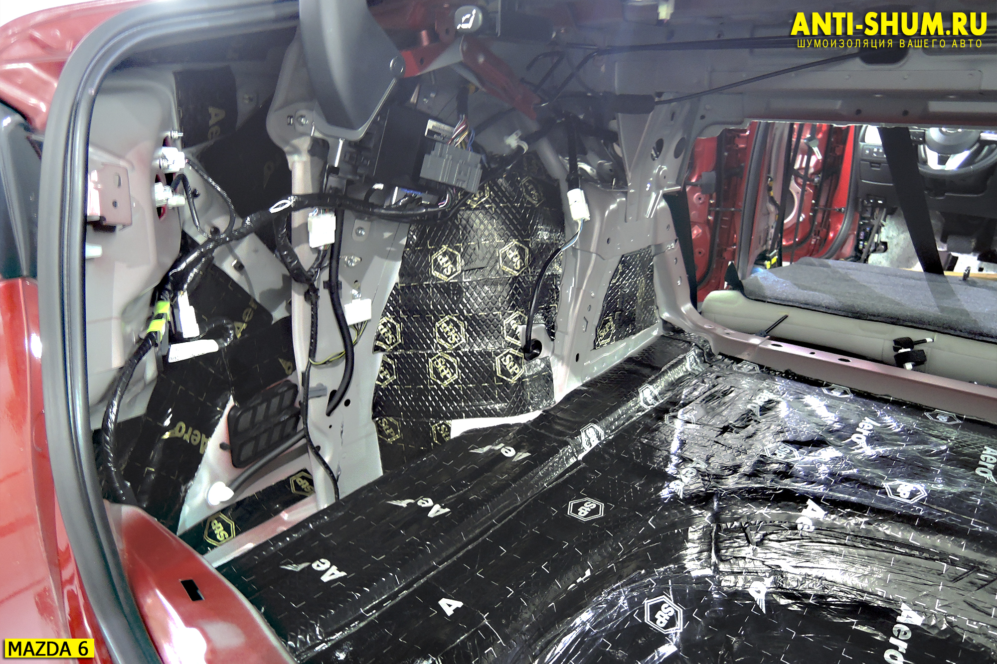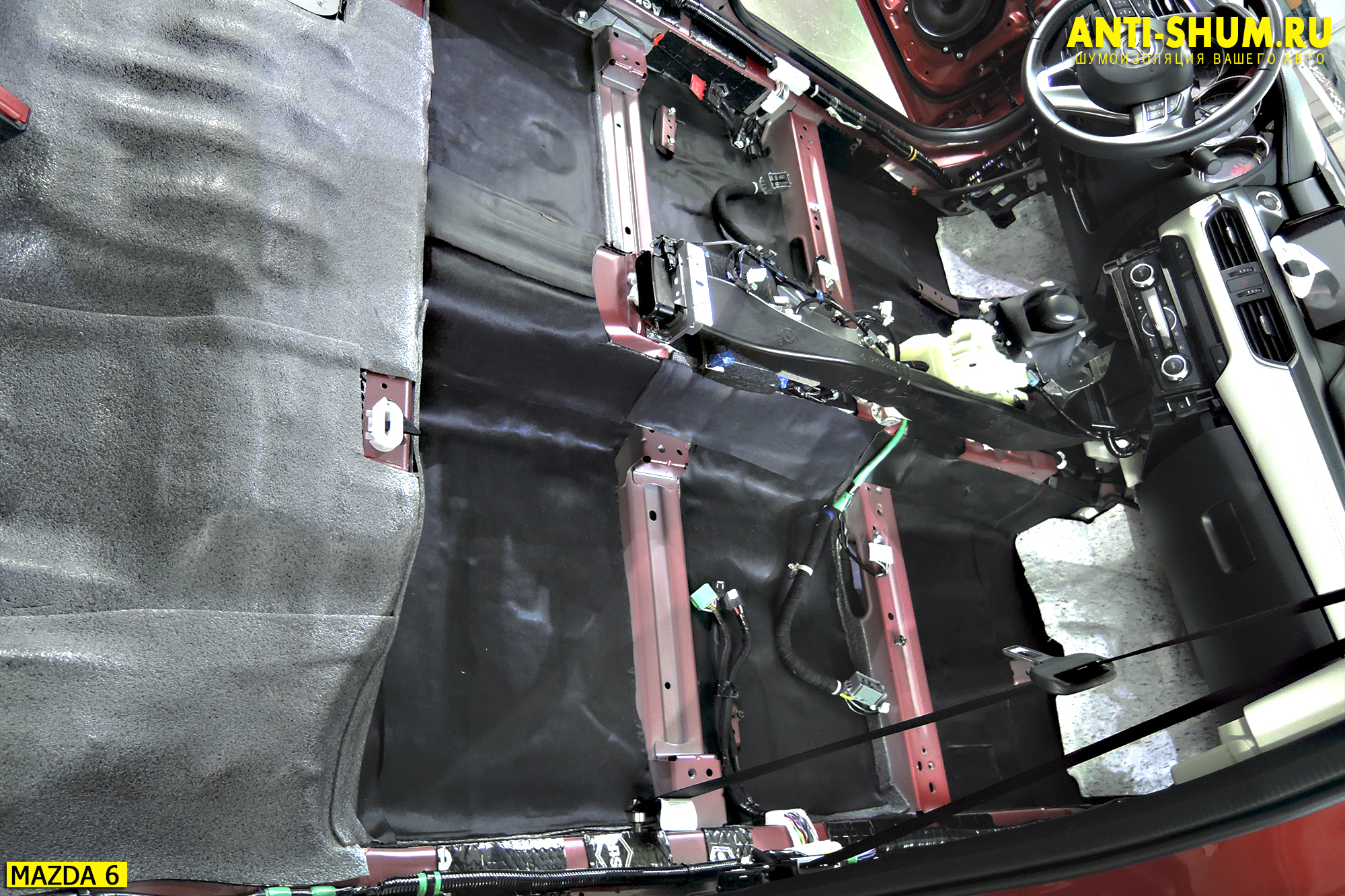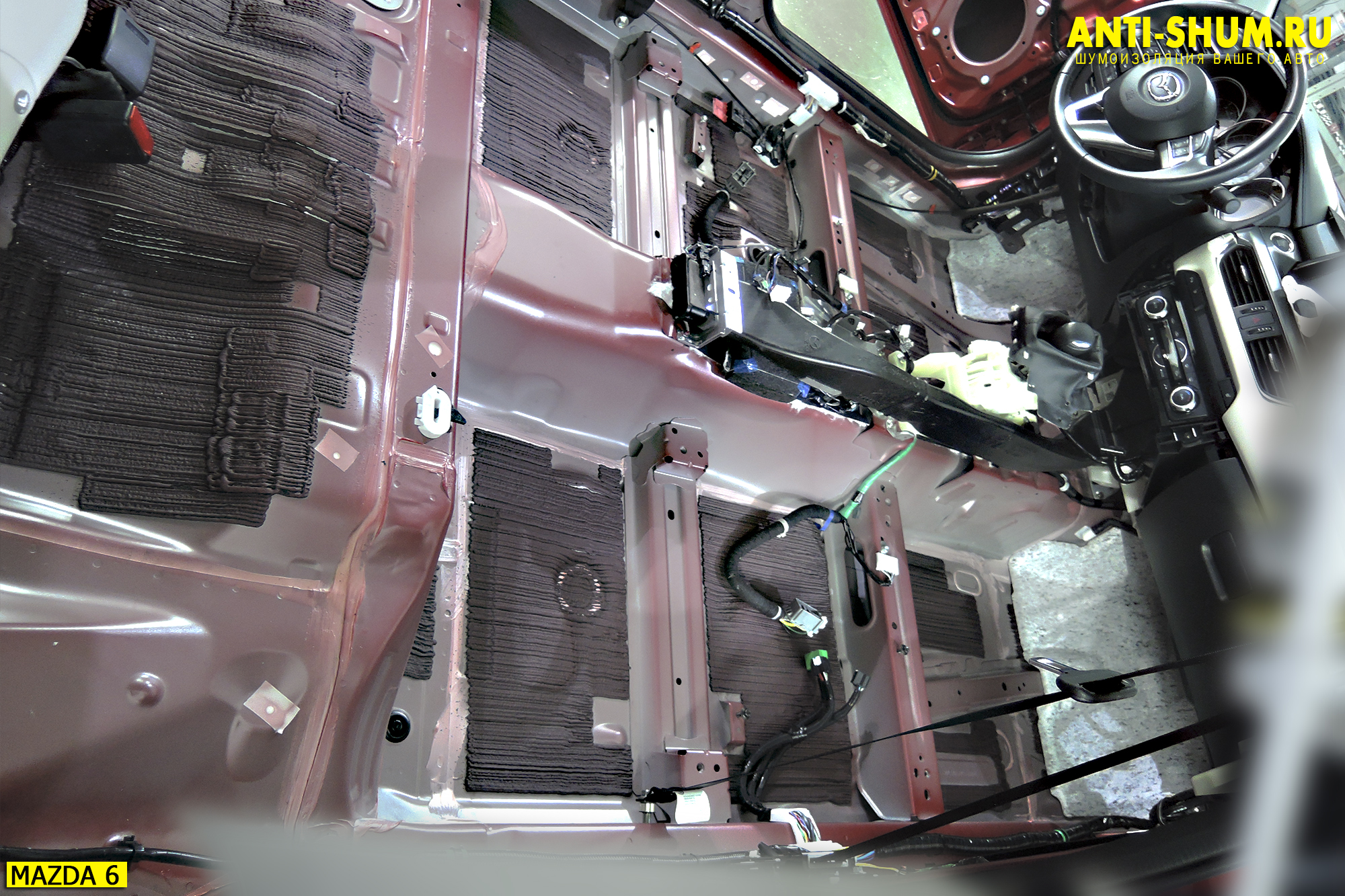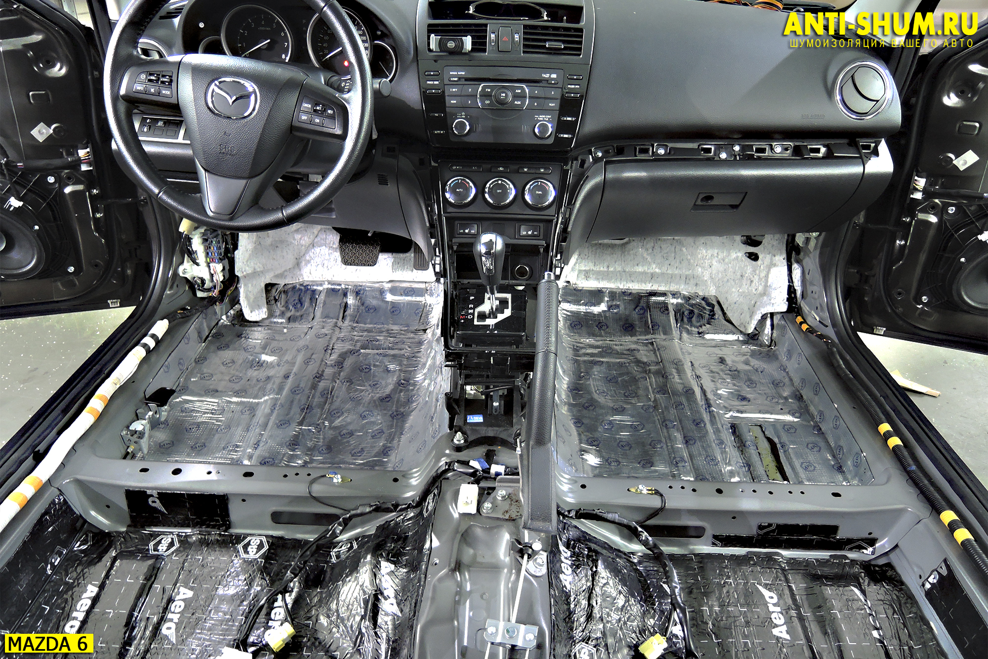 Шумоизоляция автомобиля Mazda 6 в Москве, Санкт-Петербурге, Новосибирске, Екатеринбурге, Казани, Нижнем Новгороде, Челябинске, Краснодаре, Ростове-на-Дону, Тюмени и Сочи