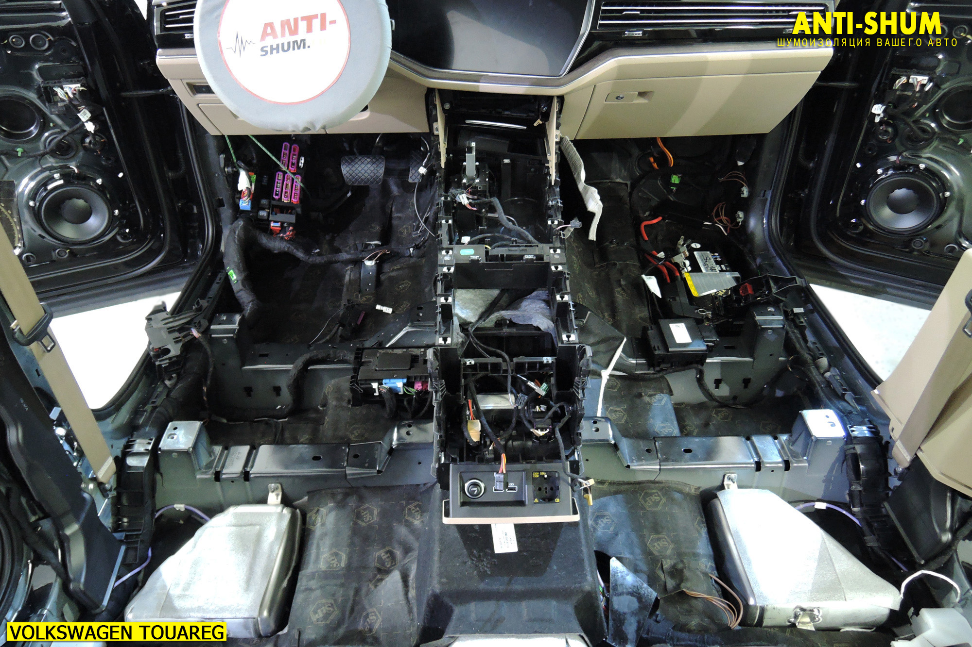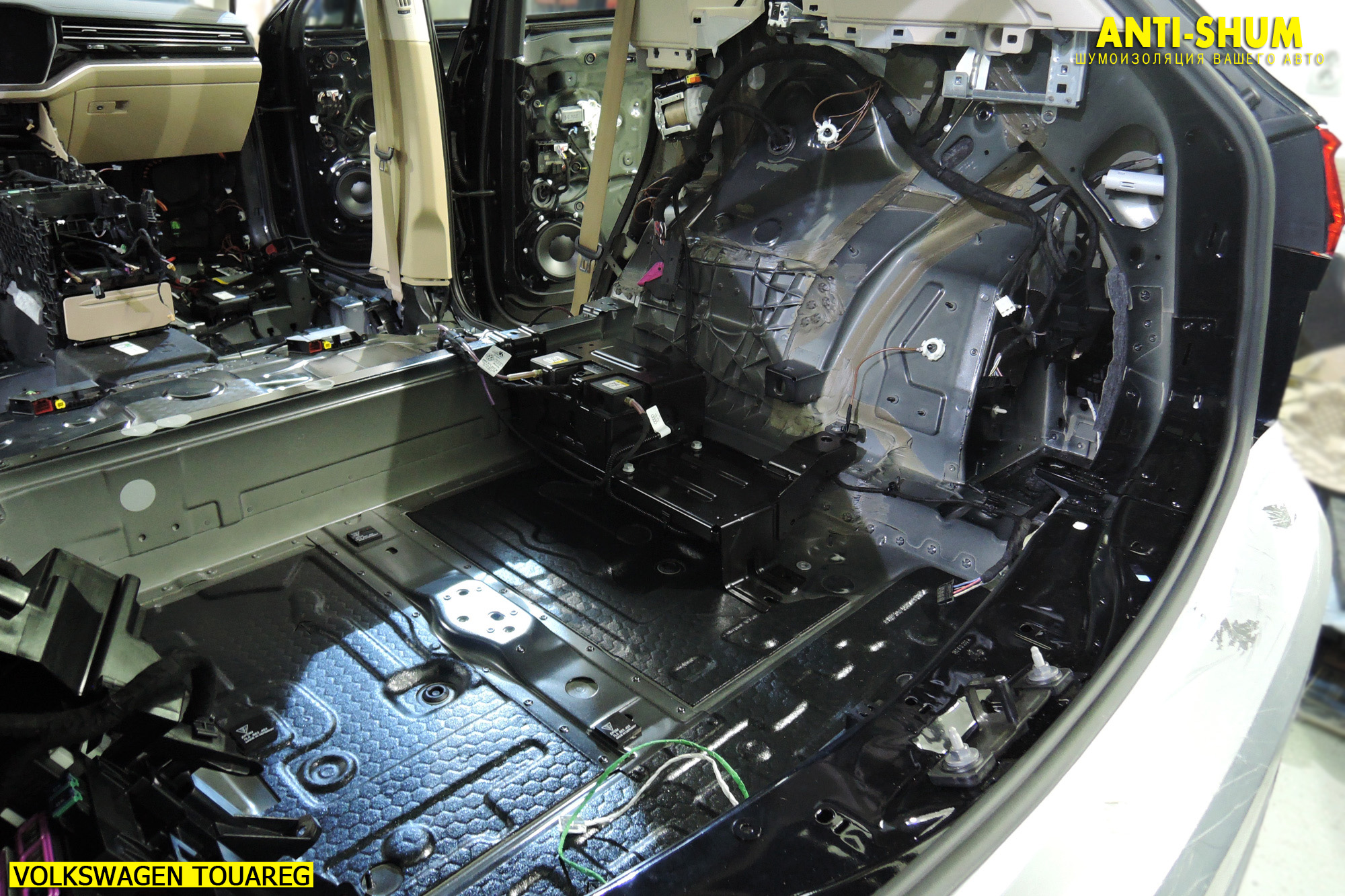 Шумоизоляция автомобиля Volkswagen Touareg в Москве, Санкт-Петербурге, Новосибирске, Екатеринбурге, Казани, Нижнем Новгороде, Челябинске, Краснодаре, Ростове-на-Дону, Тюмени и Сочи