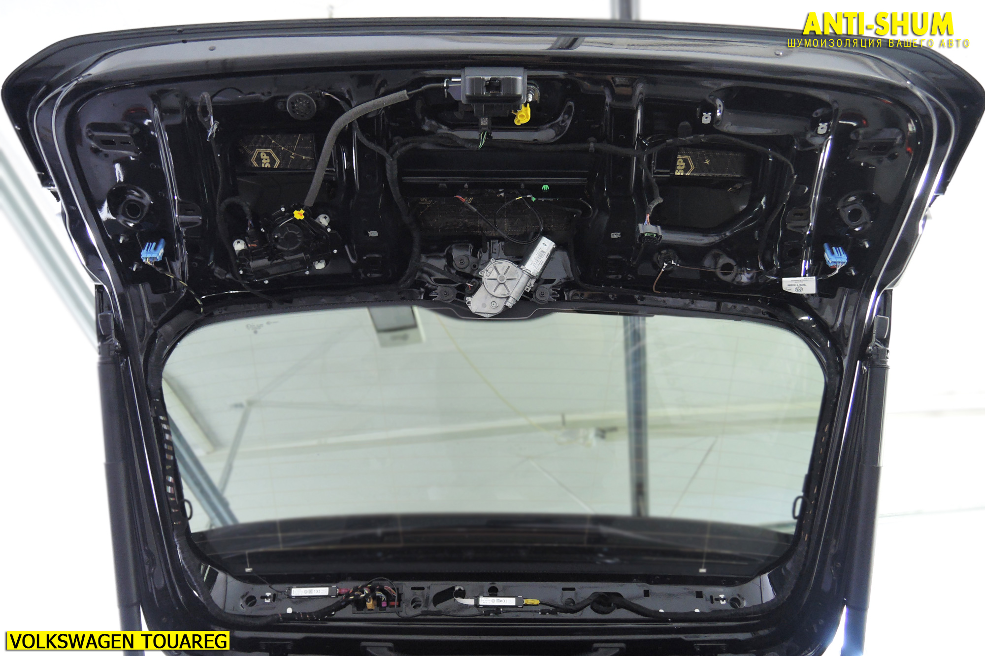 Нам остается только аккуратно установить на свои места все обшивки и проверить работу всех электрических цепей, которые отключались на время работ. Аккуратно собираем двери, протираем пластик и переходим к шумоизоляции финальных элементов: капота и двери багажника Вашего Volkswagen Touareg.